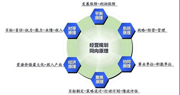 企業(yè)的有效運作應(yīng)當(dāng)遵循“戰(zhàn)略一經(jīng)營一管理”三位一體運行的規(guī)律。戰(zhàn)略著眼于長遠(yuǎn)規(guī)劃,指明企業(yè)前進(jìn)的方向;管理側(cè)重日常運營,確保企業(yè)運作的效率;而年度經(jīng)營計劃則是對上承接方向,對下保障效率,達(dá)成戰(zhàn)略和管理的結(jié)果。綜合分析年度經(jīng)營計劃在企業(yè)管理中的地位和作用,我們認(rèn)為,科學(xué)的年度經(jīng)營計劃應(yīng)當(dāng)符合六大基本原則,方能將經(jīng)營的各方面要素統(tǒng)合籌劃,實現(xiàn)同向發(fā)展。