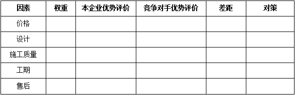 F、關(guān)鍵成交因素對(duì)比:對(duì)于某一個(gè)細(xì)分領(lǐng)域的客戶而言,成交的關(guān)鍵因素選項(xiàng)是相對(duì)清晰的,而這些因素對(duì)成交的影響權(quán)重是不同的,經(jīng)營分析就需要識(shí)別競爭對(duì)手在哪些關(guān)鍵成交因素上占據(jù)優(yōu)勢。例如:對(duì)于裝飾裝修工程行業(yè)的家庭客戶而言,其成交因素包括:價(jià)格、設(shè)計(jì)、施工質(zhì)量、工期、售后的維修維保服務(wù)等。對(duì)于一個(gè)收入中等的自住新房客戶而言,價(jià)格、設(shè)計(jì)因素、施工質(zhì)量是其主要成交因素,而對(duì)于商鋪、投資房產(chǎn)來說,工期的重要性不言而喻。如下表: