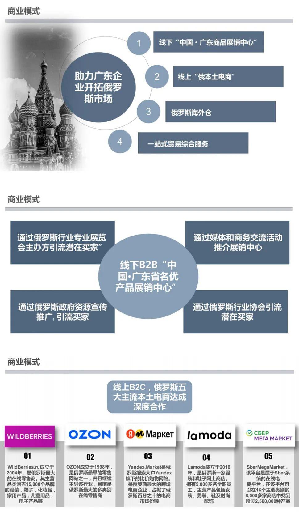 其中也包括建立廣東俄羅斯線上銷售平臺“俄羅斯粵商城”,為廣東品牌提供在線銷售渠道,幫助廣東企業(yè)產(chǎn)品入 駐俄羅斯本土電商平臺。